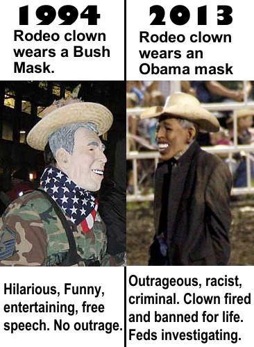 Bush rodeo clown – free speech. Obama clown – racist, criminal.