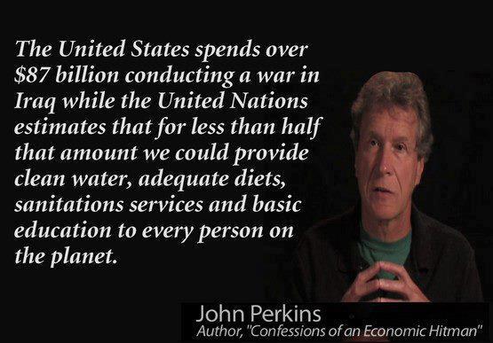 John Perkins – The United States spends over $87 billion conducting a war in Iraq while the United Nations estimates that for less than half that amount we could provide … to every person on the planet
