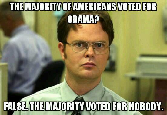 The majority of Americans voted for Obama? False. The majority voted for nobody.