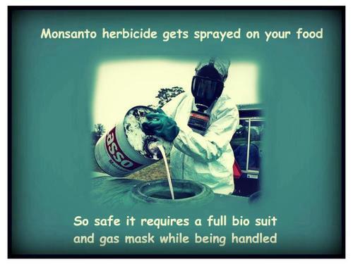 Monsanto herbicide gets sprayed on your food. So safe it requires a full bio suit and gas mask while being handled.
