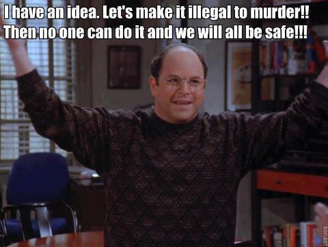 George Costanza – I have an idea. Let’s make it illegal to murder!! hen no one can do it and we will all be safe!!