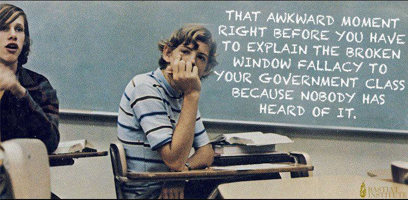 That awkward moment right before you have to explain the broken window fallacy to your government class because nobody has heard of it.