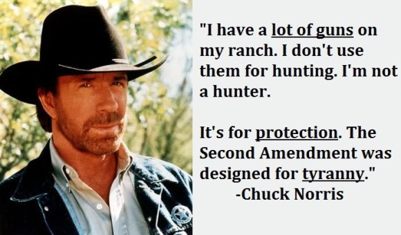 One thought on “Chuck Norris – I have a lot og guns on my ranch. I don’t use them for hunting. I’m not a hunter. It’s for protection. The Second Amendment was designed for tyranny.”