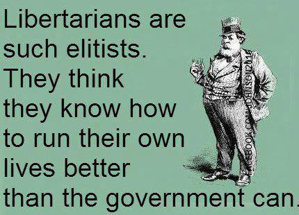 Libertarians are such elitists. The think they know how to run their own lives better than the government can.
