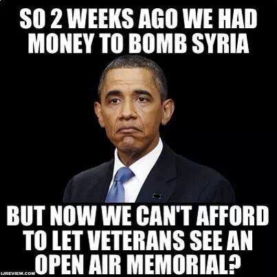 So 2 weeks ago we had money to bomb Syria, but now we can’t afford to let veterans see an open air memorial?