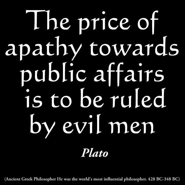 Plato – The price of apathy towards public affairs is to be ruled by evil men.