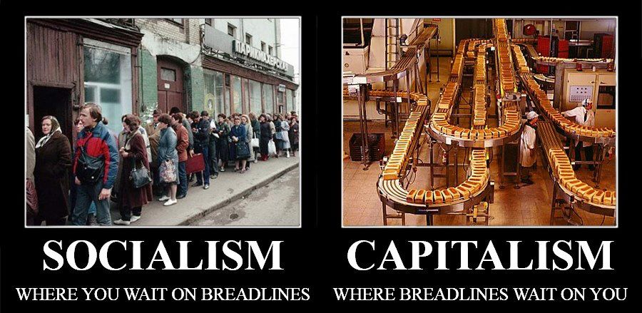 Socialism – Where you wait on breadlines. Capitalism – Where breadlines wait on you.