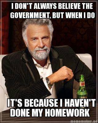 Government – I don’t always believe the government, but when I do, it’s because I haven’t done my homework.