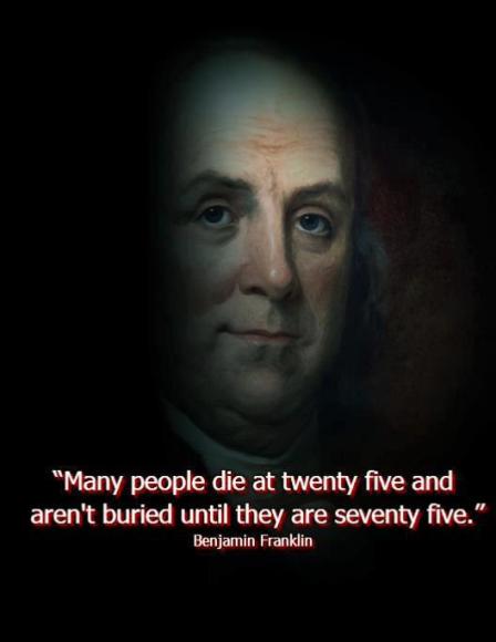 Benjamin Franklin – Many people die at twenty five and aren’t buried until they are seventy five.
