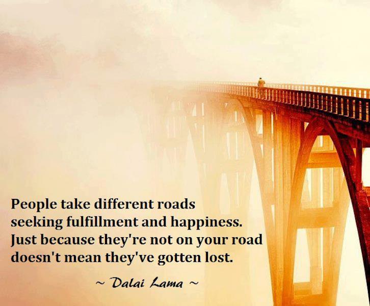 Dalai Lama – People take different roads seeking fulfillment and happiness. Just because they’re not on your road doesn’t mean they’ve gotten lost.