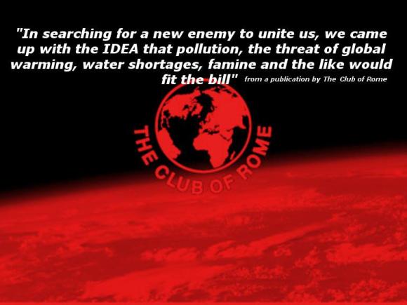 The Club of Roam – In searching for a new enemy to unite us, we came up with the IDEA that pollution, the threat of global warming, water shortages, famine and the like would fit the bill.