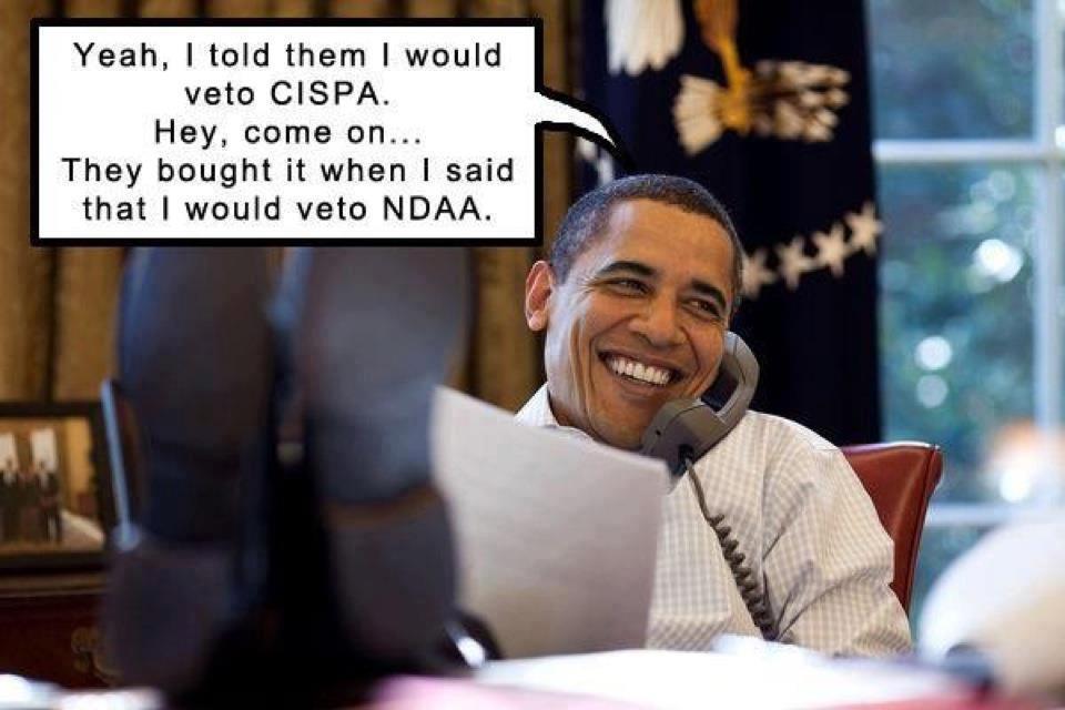 Yeah, I told them I would veto CISPA. Hey, come on… They bought it when I said that I would veto NDAA.