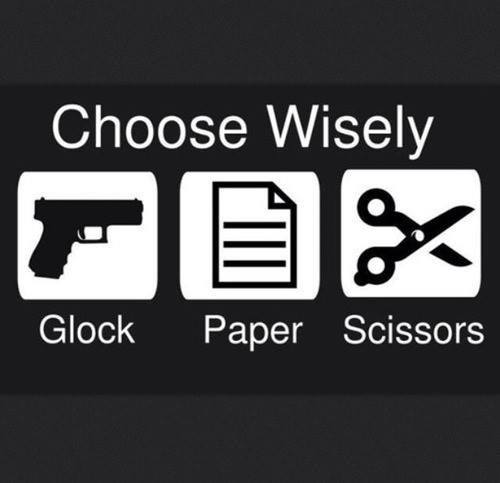 Paper only beats Glock when you’re playing against leftists in a court of law. To defeat them, use scissors to cut up their legislation