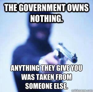 The government owns nothing, anything they give you was taken from someone else.